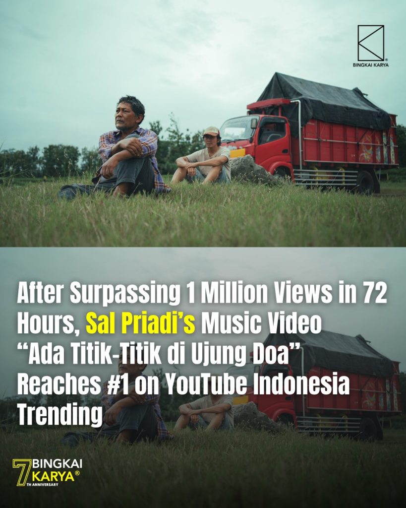 Bingkai Karya – Singer-songwriter Sal Priadi officially released the music video for his song “Ada Titik-Titik di Ujung Doa” on March 11, 2026. Within less than 72 hours of its release on YouTube, the music video quickly gained widespread attention, reaching #1 on YouTube Indonesia Trending YouTube chart and accumulating more than 1 million views.
