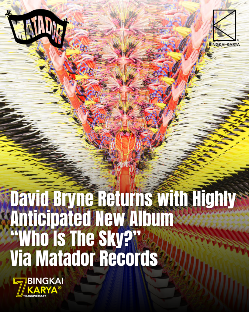 Bingkai Karya – David Byrne makes a powerful comeback with his highly anticipated album “Who Is the Sky?”, released under Matador Records. This marks Byrne’s first studio album since American Utopia (2018), a critically acclaimed project that evolved into a Broadway sensation and an HBO film. Produced by Grammy Award winner Kid Harpoon (known for
