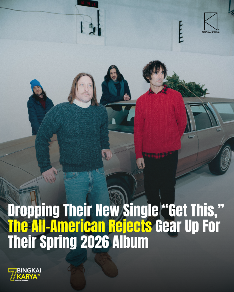 Bingkai Karya – Fresh from an arena tour with the Jonas Brothers, pop-rock icons The All-American Rejects unveil a sunlit, hook-filled new single, “Get This”, setting the stage for their upcoming highly anticipated album ‘Sandbox’, arriving Spring 2026. The All-American Rejects bring their signature spark back in “Get This”, an indie-pop track reminiscent of their earlier hits like “Gives You Hell” and “Move Along”. Its accompanying music video cleverly nods to classic holiday films, featuring the band on five playful, cheeky sets.