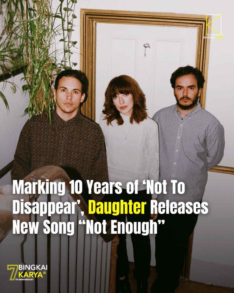Bingkai Karya – This year marks the 10th anniversary of Daughter’s studio album ‘Not To Disappear’. To celebrate the milestone, the trio of Elena Tonra, Igor Haefeli, and Remi Aguilella have shared a new song titled “Not Enough.”