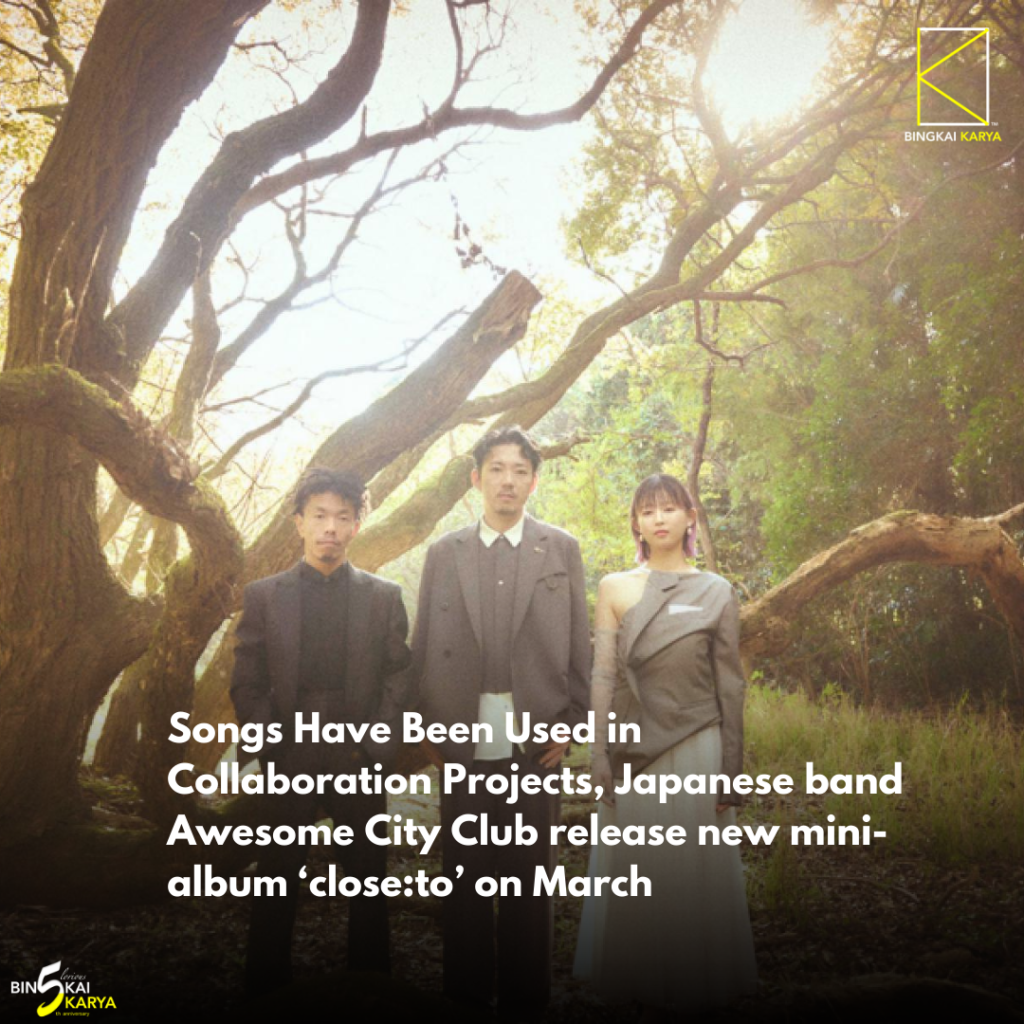 Bingkai Karya – Japanese band Awesome City Club release their new digital mini-album ‘close:to’ on Wednesday, March 13. All of the songs have been used in collaboration projects, including ‘hikari’, the theme song for the Wednesday drama series ‘Nursing Aide At Your Side’ currently airing on Nippon Television in Japan. The mini-album ‘close:to’ includes several songs with the theme of “you and me”, so the spelling of the title is intended to reflect the closeness of the band and the listener. However, using Japanese wordplay, the title is pronounced “closet”, as each song is like a beloved item of clothing that the band have stored carefully in a wardrobe. The mini-album compiles Awesome City Club’s tracks following their fourth full-length album ‘Get Set’, released in 2022.