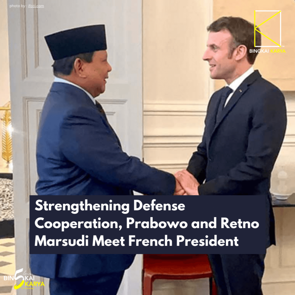 Minister of Defense Prabowo Subianto and Minister of Foreign Affairs Retno Marsudi paid a courtesy visit to French President Emmanuel Macron, at the Elysee Palace on Friday, 21 July 2023. During the meeting Defense Minister Prabowo and President Macron discussed Indonesia’s readiness to strengthen its strategic partnership with France.